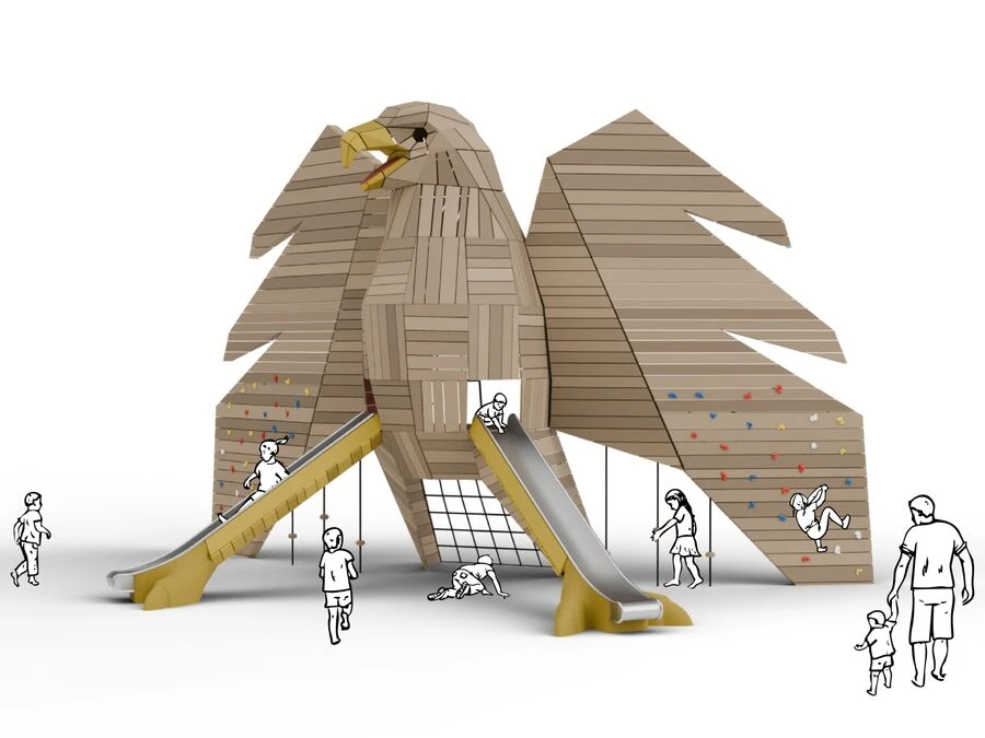 Amaze Ørnen er skapt for alle aldre og oppleves best sammen – som et felles samlingspunkt like mye som en lekeattraksjon. Spesielt i byer eller destinasjoner der ørnen er en del av det lokale emblemet, får skulpturen en ekstra dimensjon. Den blir ikke bare en lekeplass, men et symbol – et identitetsskapende landemerke som forankrer stedets fortelling i tre, bevegelse og opplevelse.
