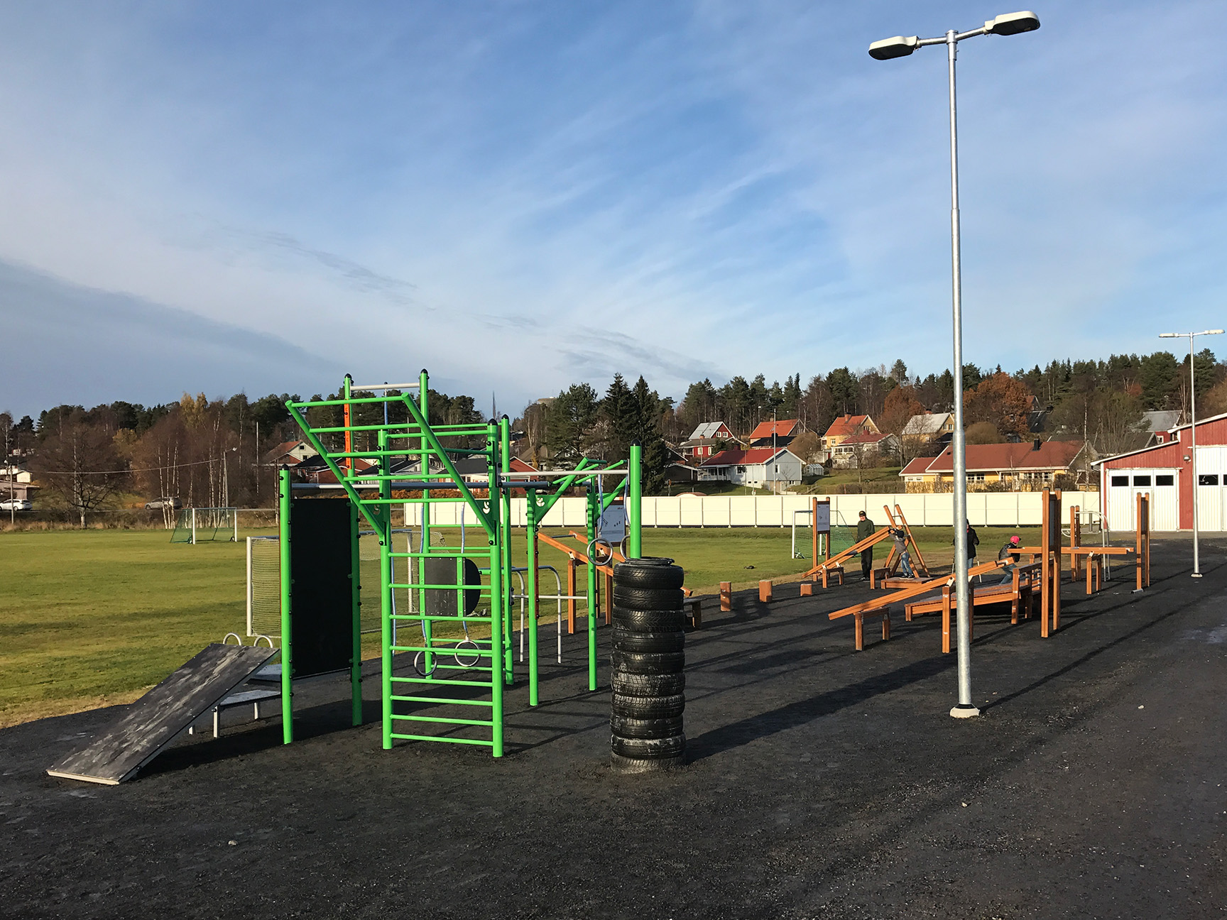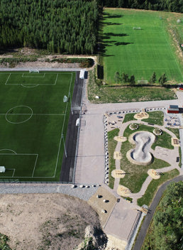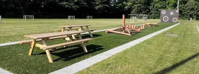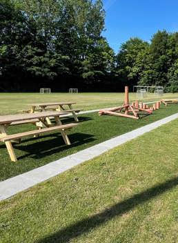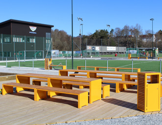 Parkmøbler som benker, bord- og benkesett, loungemøbler og overbygg skaper naturlige møteplasser rundt fotballbanen. Her kan tilskuere følge kampen fra sidelinjen, foreldre kan slappe av, og fellesskapet leve videre – også når kampen er over.