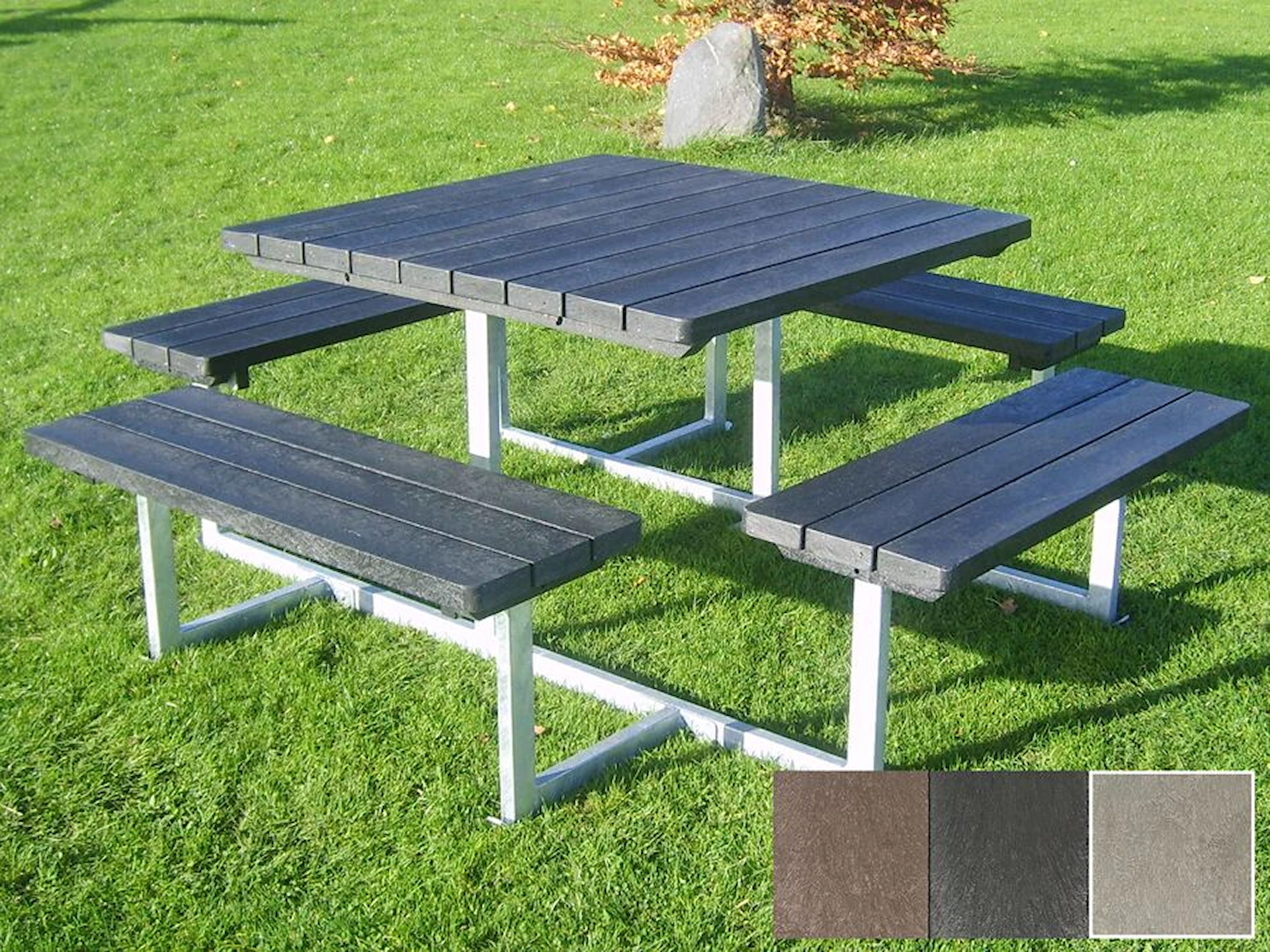 - Resurkulert plast : Resirkulert plast krever ikke vedlikehold. Materialet er værbestandig og motstandsdyktig mot hyppig bruk. For å bevare et pent utseende kan overflaten rengjøres med vann og en myk børste ved behov.