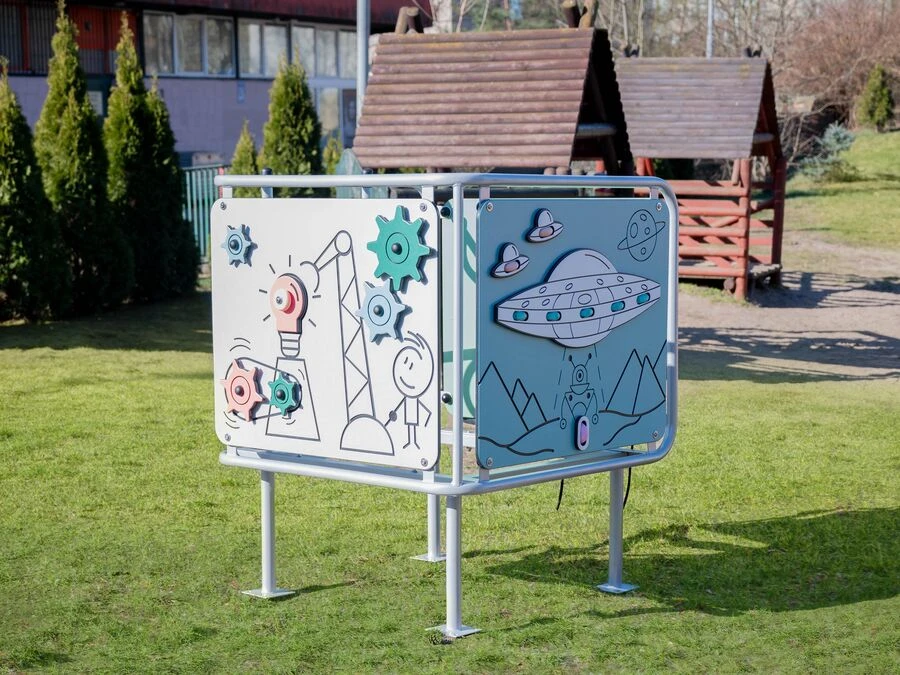Med sin robuste konstruksjon og sitt fargerike uttrykk blir Sanseboksen et populært innslag i enhver barnehage, lekepark eller lekerom – et sted der barn lærer gjennom lek. Sanseboksen inngår i vårt tema Spill, en serie med spesialdesignet lekeutstyr for morsomme aktiviteter og uteleker.